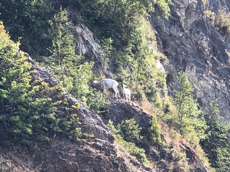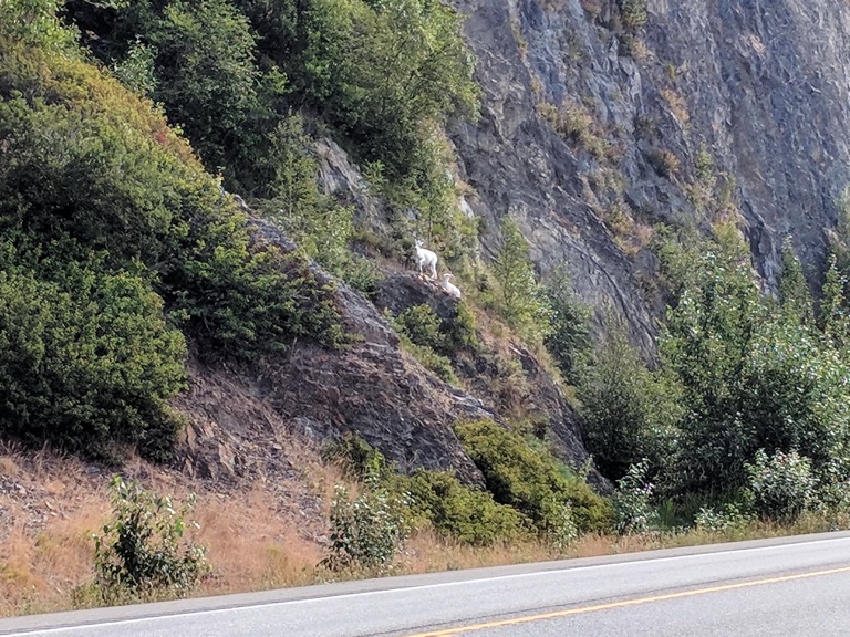 foxes, and wood bison. Back on the road, we stopped to see mountain goats in the cliffs.